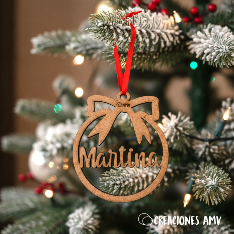 Cada pieza se personaliza con el nombre que desees, grabado o troquelado según el diseño, convirtiéndose en un recuerdo navideño ideal para regalar o decorar tu hogar.