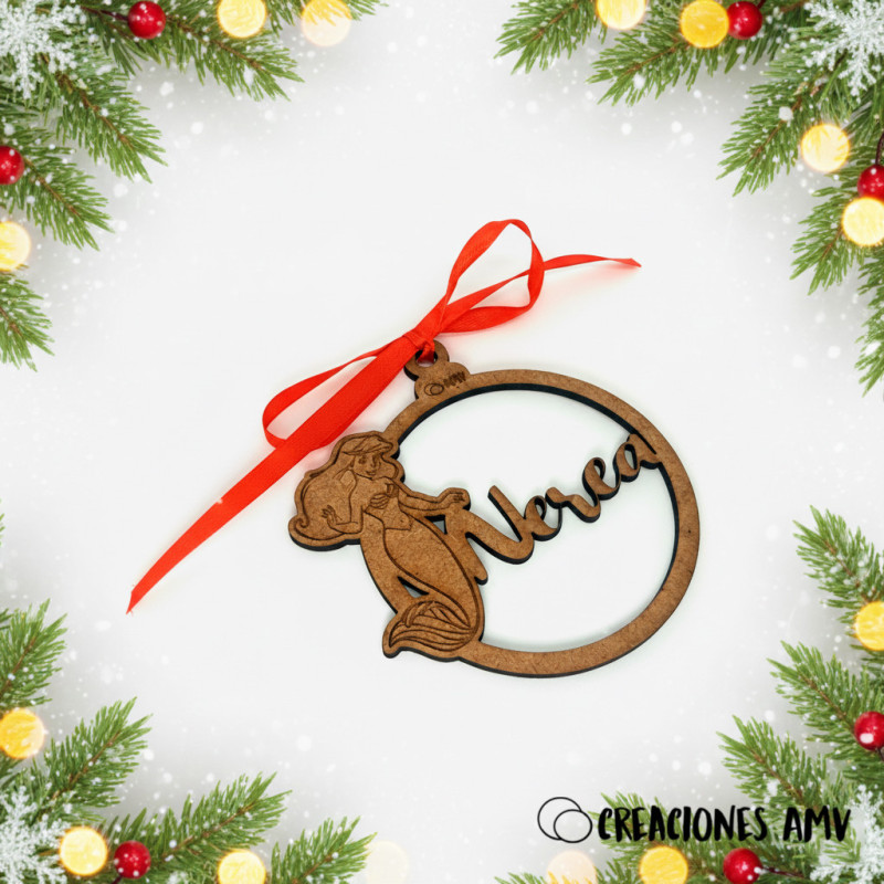 Decora tu árbol con un toque mágico con la Bola “Sirenita”. Personalizada con el nombre que elijas y grabada en madera DM con corte láser de precisión. Ideal para los amantes del mar y la fantasía.