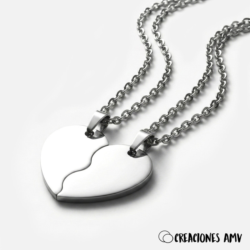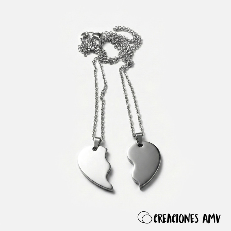 Colgantes Eternal Bond: Corazón Partido Acero | Creaciones AMV