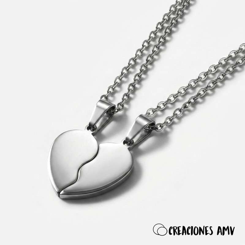 Colgantes Eternal Bond Little: Corazón Partido Acero | Creaciones AMV