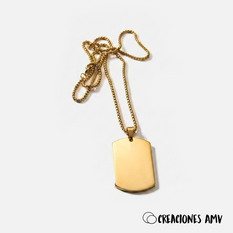 El Colgante Army Golden es la unión perfecta entre la fuerza del diseño militar y la elegancia del acabado en oro. Esta pieza no es solo un accesorio; es un símbolo de identidad. Fabricada en acero inoxidable de alta calidad con un recubrimiento dorado de gran durabilidad, cuenta con una placa de 25x38 mm que ofrece el espacio perfecto para grabados detallados.
