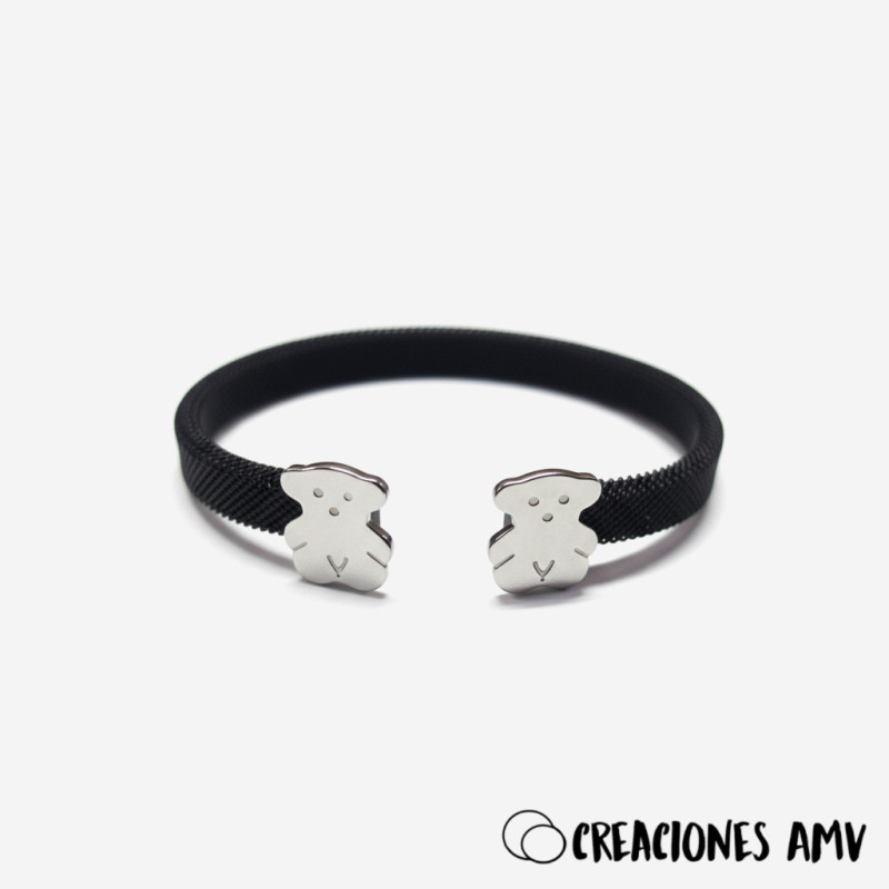 Brazalete de acero inoxidable para mujer, disponible en varios acabados elegantes, con el icónico detalle Bear en los extremos.